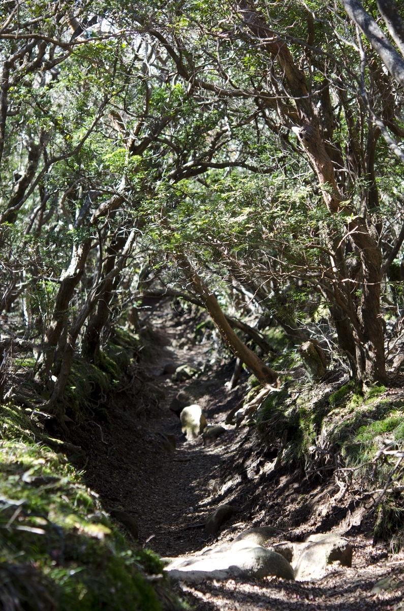 風衝林のアセビPieris japonicaのトンネルを抜けていきます。