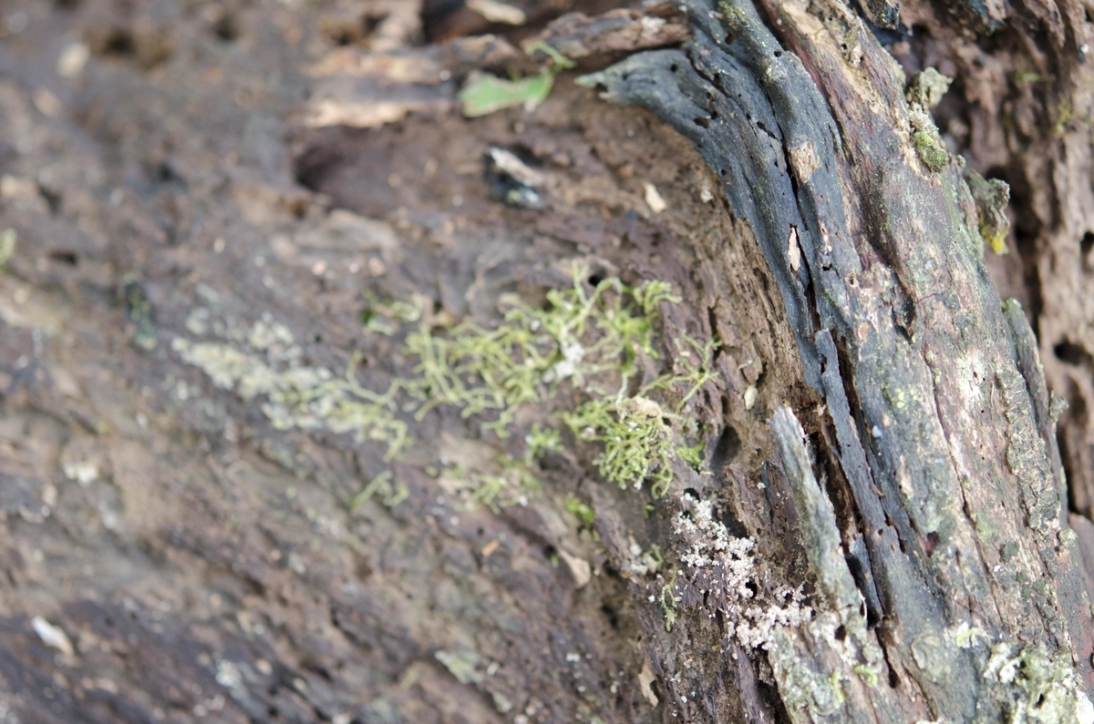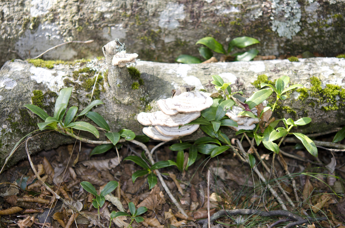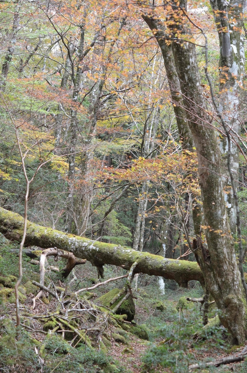 倒壊したブナにはアセビやアリドオシDamnacanthus indicusの着生が見られます。湿度が高いのでしょう。