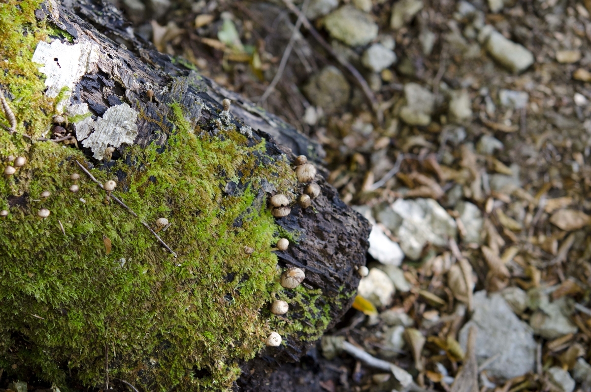 生き物はこの他に植物ではスダジイCastanopsis sieboldii・ツブラジイCastanopsis cuspidata・アラカシQuercus glauca・クヌギQuercus acutissiam・トチノキAesculus turbinata・ヤマアジサイHydrangea serrata、菌類ではザイモクタケOxyporus ravidus・シロカイメンタケPiptoporus soloniensis・カワラタケTrametus versicolor・ウスバタケIrpex lacteus、変形菌ではホネホコリDiderma effusum・バークレイホネホコリDiderma platycarpum var. berkeleyanum、鳥ではモズLanius bucephalus・カケスGarrulus glandarius・ヒガラParus ater・シジュウカラParus major・アカゲラPicoides major・コゲラPicoides kizuki・ウグイスCettia diphone・ミソサザイTroglodytes troglodytes・ヒヨドリHypsipetes amaurotis、哺乳類の鳴き声ではニホンジカCervus nippon・ニホンザルMacaca fuscataを確認しました。変形菌も鳥も個体数が多そうでしたので、豊かな森なのかも知れません。ライントランセクトをすると楽しそうです。