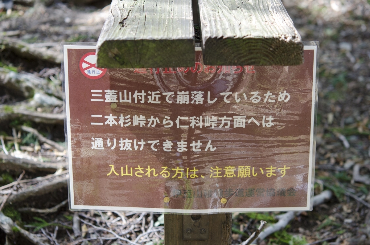 台風のため山が荒れているなとは思っていたのですが、三蓋山近辺で道が崩落したとのこと。この時は折角来たので、行ける所まで行って引き返そうと思っていました。