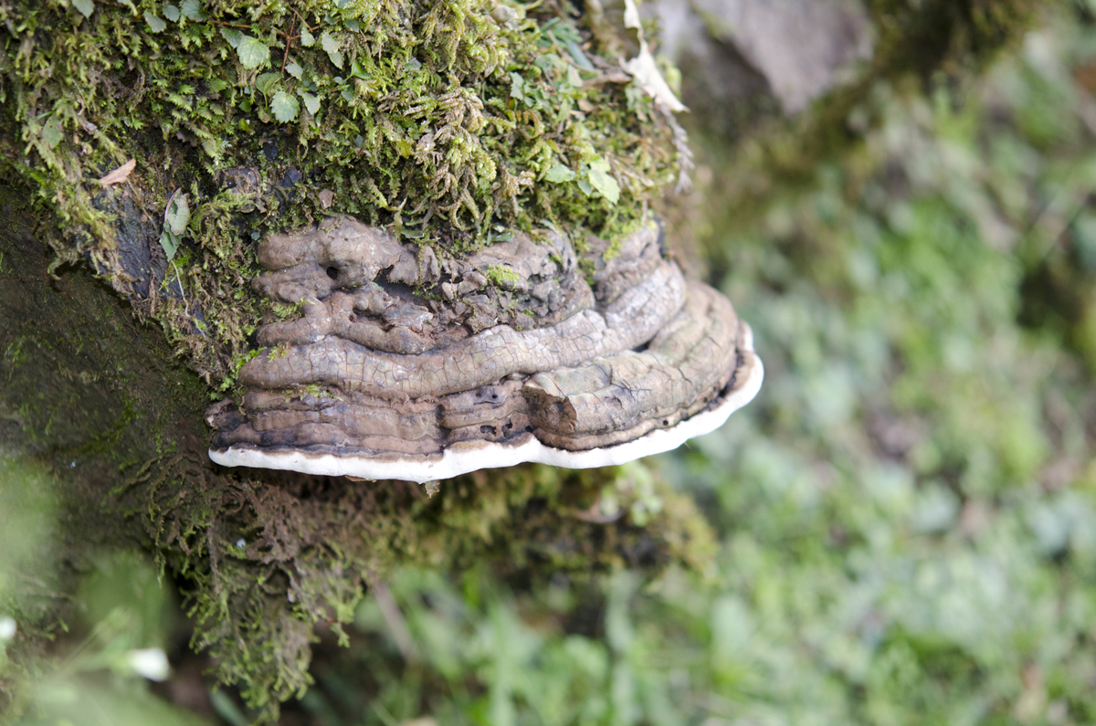 ハカワラタケTrichaptum biformeは至る所に生えています。