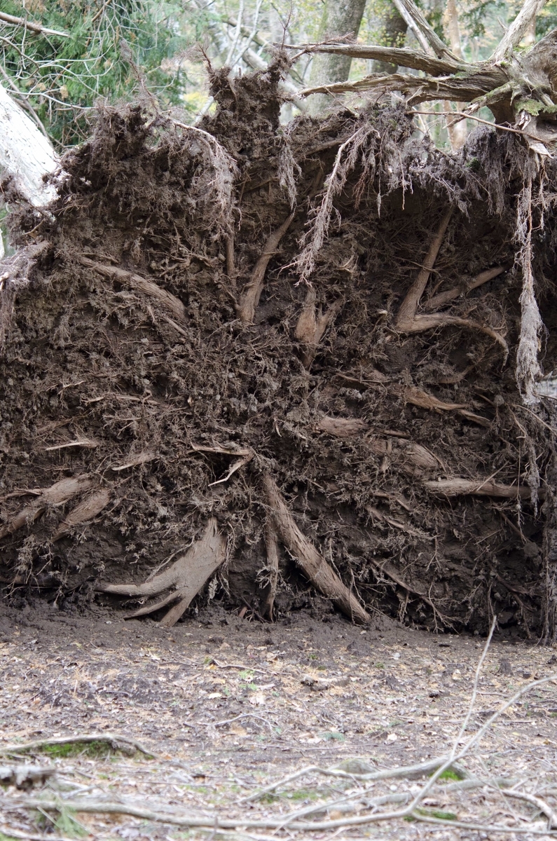 根こそぎ倒れた倒木が至る所にあります。